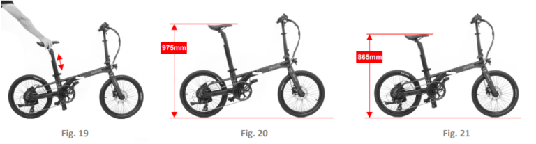 Ajuste a altura do Selim (Fig. 19), respeitando a inserção mínima (Fig. 20) e inserção máxima (Fig.21).